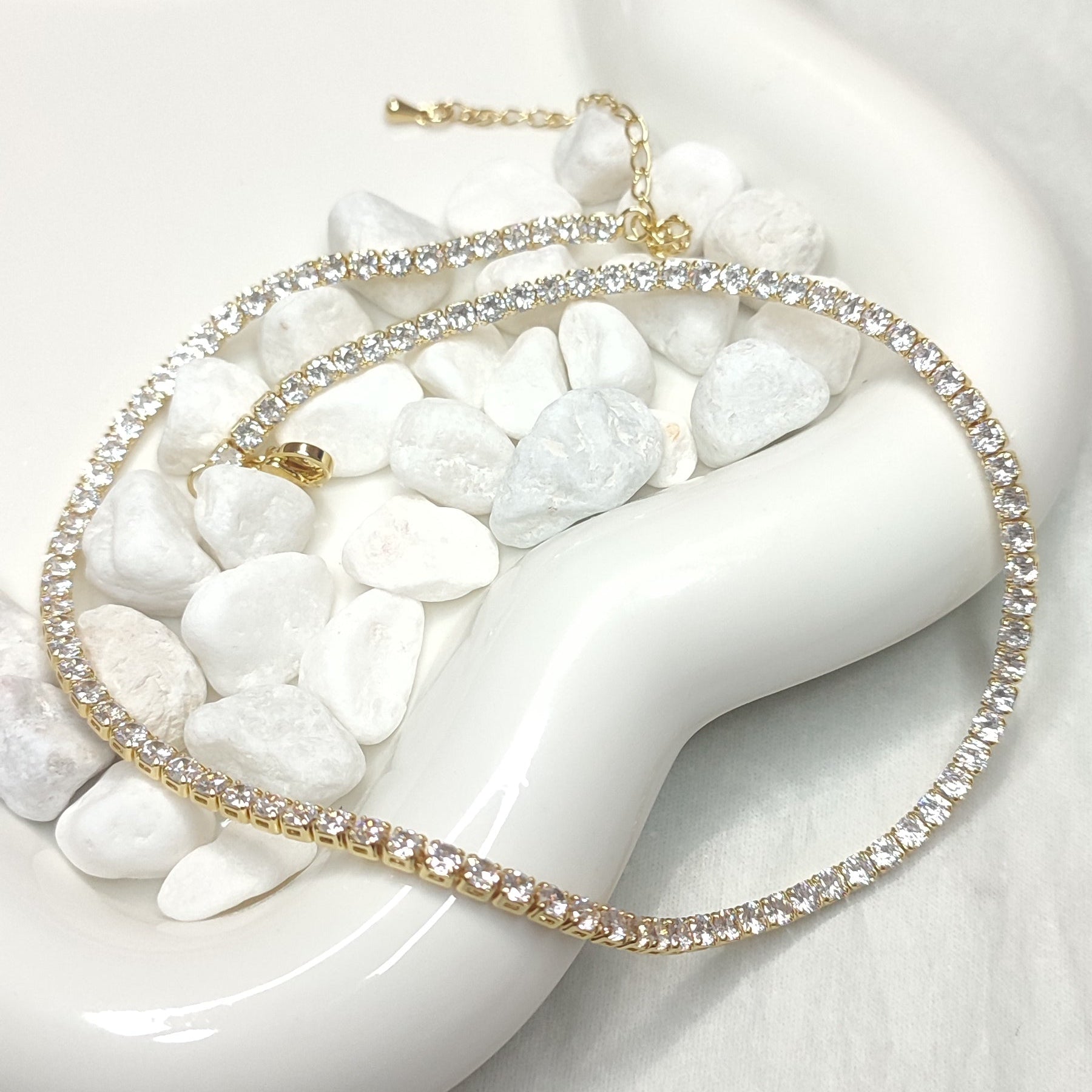 Materiales de calidad: piedras de zirconia cúbica montadas en cadena delicada y resistente.